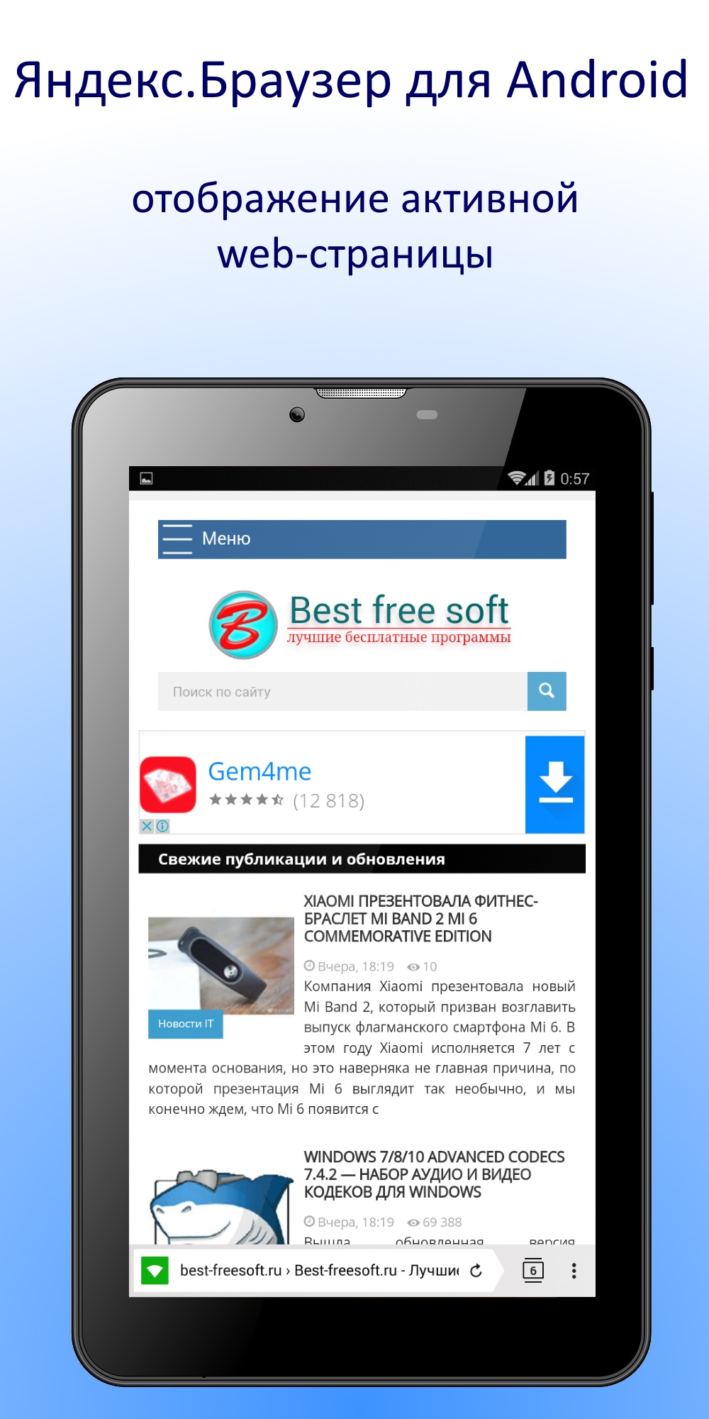 Яндекс.Браузер для Android — один из популярных веб-браузеров для открытия web-страниц на мобильных устройствах под управлением ОС Android. Как и другие браузеры, разработанные на базе Chromium, такие как Google Chrome для Android, Opera для Android или Mozilla Firefox для Android, Yandex Browser обладает высокой скоростью загрузки сайтов, а также картинок и видео, как на смартфонах, так и на планшетах.Главной особенностью Yandex Browser для Android является тесная интеграция с сервисами Яндекс: электронной почтой, онлайн-переводчиком, поисковой системой и др. Также в браузере реализована загрузка и воспроизведение музыкальных композиций и видео, посредством встроенного плагина Adobe Flash Player, и возможность просмотра PDF-документов. Кроме этого, пользователь непосредственно в Yandex Browser может выполнять следующие действия: синхронизировать свои закладки в Яндекс.Браузере между компьютером и своим мобильным устройством с помощью аккаунта в Яндексе; расширять функциональные возможности браузера посредством установки дополнений; переходить в режим чтения, который убирает все интерфейсные элементы, не относящиеся к читаемой публикации — рекламу, меню сайта, кнопки, социальные виджеты и прочее; ускорять загрузку веб-страниц при помощи режима Турбо, что делает пользование интернетом комфортным, даже при низкой скорости подключения.