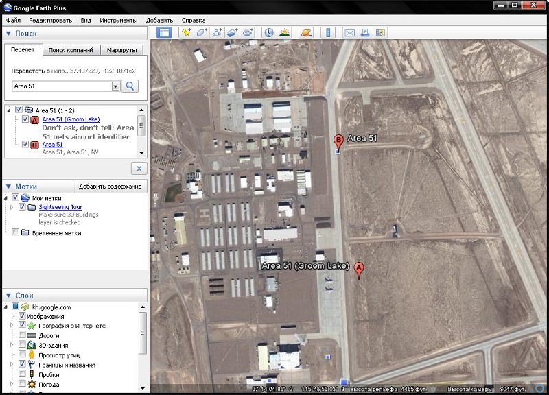 – 3D модели рельефа и зданий Google Earth. Возможность осмотра 3D конструкций Google Earth (рельеф и здания) с разных сторон и под разными углами. Интерактивные трехмерные изображения гор и построек — одна из более новых и наиболее впечатляющих особенностей Google Earth Pro. В последних версиях программы было добавлено еще больше высококачественных моделей для многих горных массивов, а текстуры в моделях зданий стали более реальными: кирпичи выглядят как кирпичи, стекло как стекло и вообще 3D мир стает все более похожим на реальный. Это еще один шаг на пути создания полной 3D модели целой планеты.