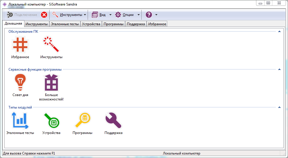 Перечень модулей программы Sandra: